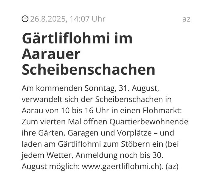 Nächster Gärtliflohmi ist am Sonntag, 30. August 2026